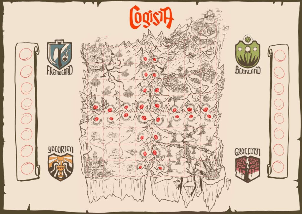 Cogisia ist ein Strategiebrettspiel, das klassischerweise im Team-Modus 2-gegen-2 gespielt wird. Jedes Team verfügt über verschiedenste Spielfiguren wie Bauern, Helden und Könige und kann diese mit Spielpunkten bewegen, upgraten oder gegnerische Spielfiguren angreifen. Das Spielziel ist es als Team die beiden gegnerischen Könige in der Gedankenwelt zu schlagen, oder alternativ am Ende der Spielzeit das größte Gebiet zu kontrollieren. Der Platz auf dem Spielfeld ist knapp, sodass es bereits in der ersten Runde zum Kampf zweier Parteien kommen kann. Die Regeln sind so konzipiert, dass neue Spieler einen leichten Zugang finden und schnell auch selbst komplexere Strategien entwickeln können. Da es viele potenzielle Zugmöglichkeiten und taktische Überlegungen gibt, bleibt es jedoch für alle Spieler schwierig den besten aller Züge zu wählen und einen ruhigen Puls zu behalten.